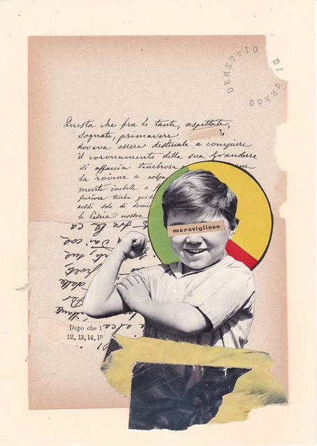 Collages che parlano, carte che ospitano volti di bambini pronti ad affermare concetti intensi della vita sociale ma con la forza e la leggerezza dell’infanzia.